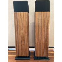The Australian OHM ACOUSTICS Walsh Series are available in various stretch cloth finishes. The demo pair are finished in an aboriginal pattern Mina Mina Dreaming by Pauline Napangardi Galagher. There are hundreds of suitable fabrics which can be used, they don't need to be acoustically transparent as they only cover the cabinet panels.